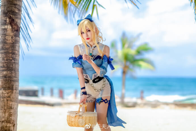 原神 芭芭拉和琴泳裝夏日cos Momoko葵葵&天夫人 (12P)