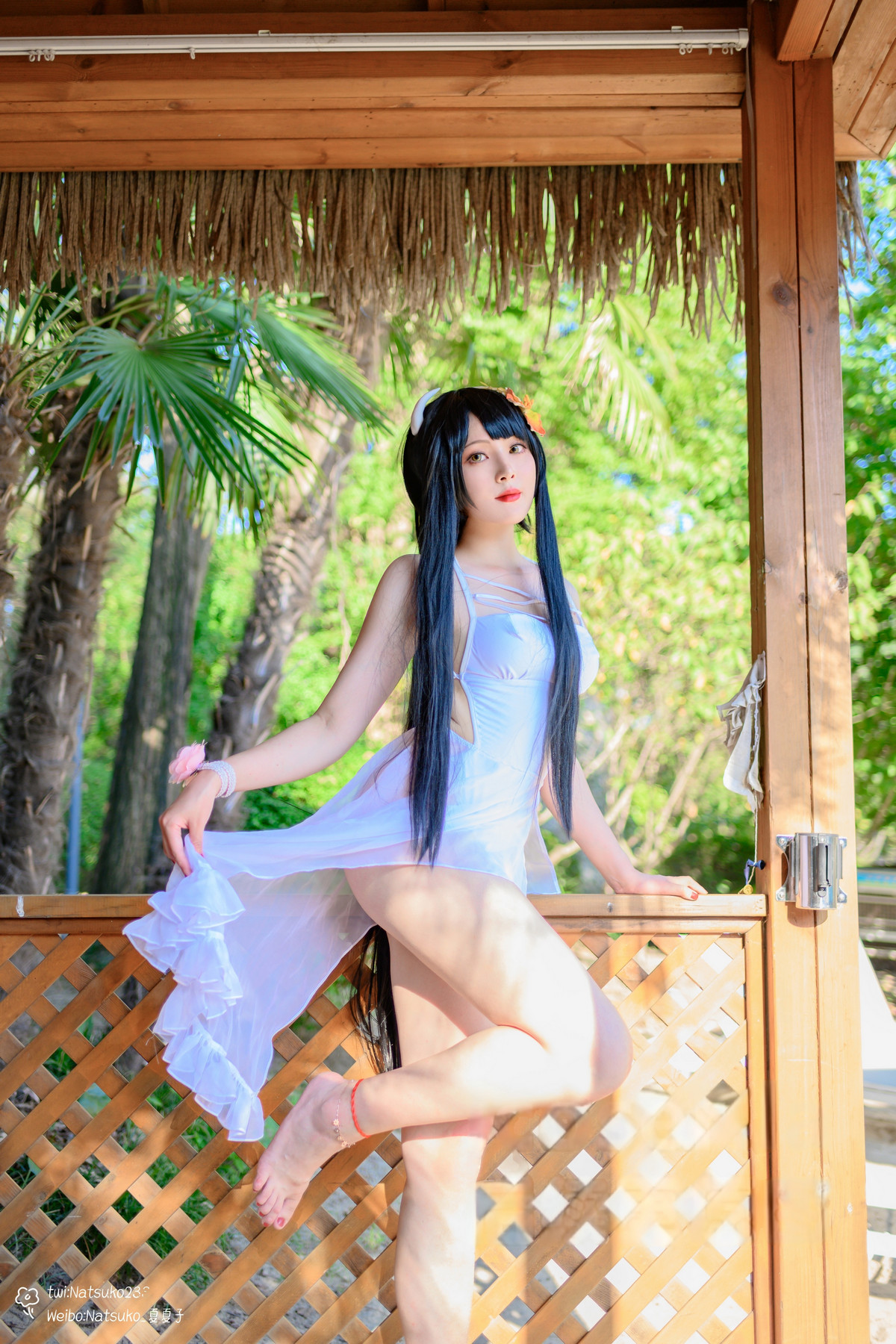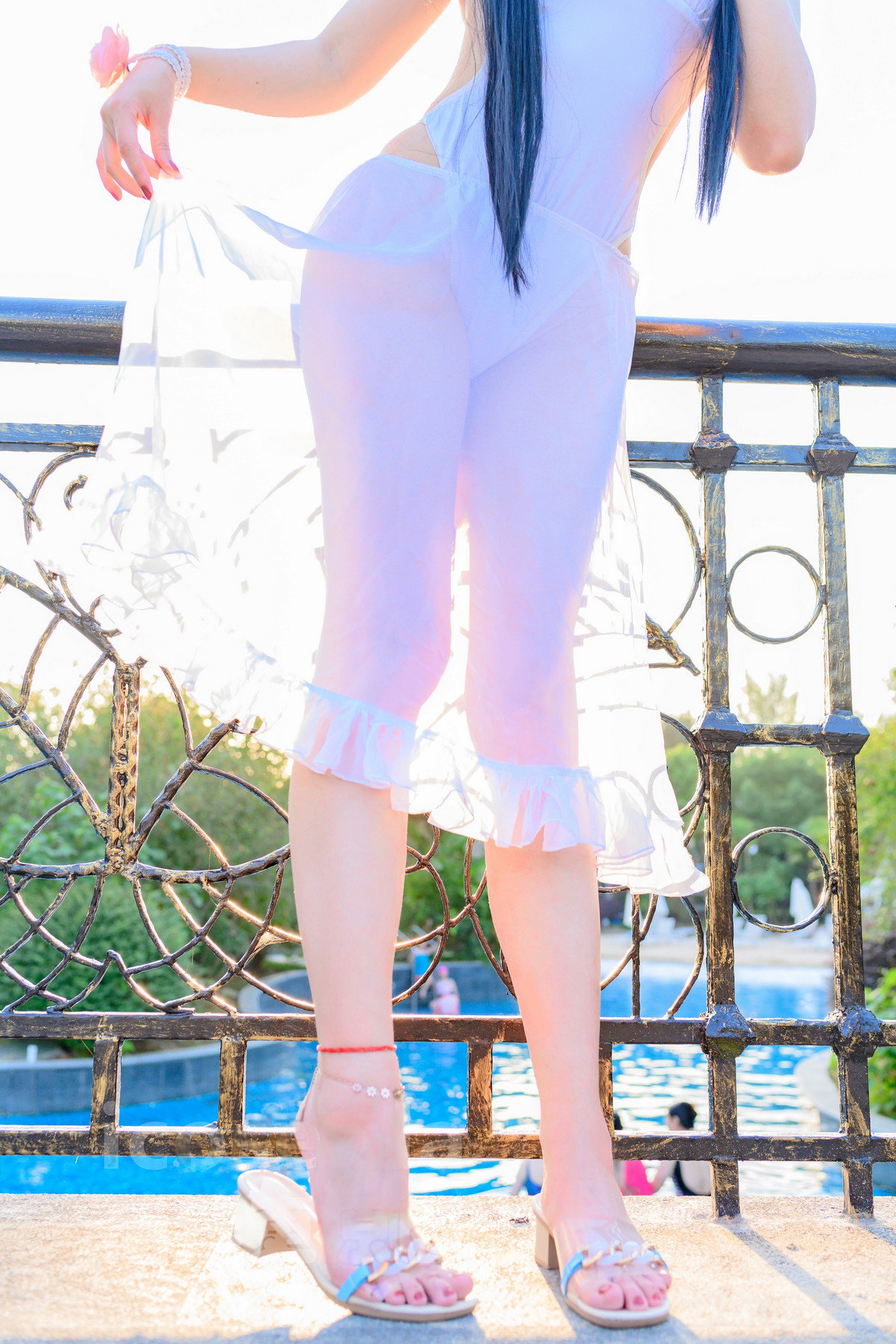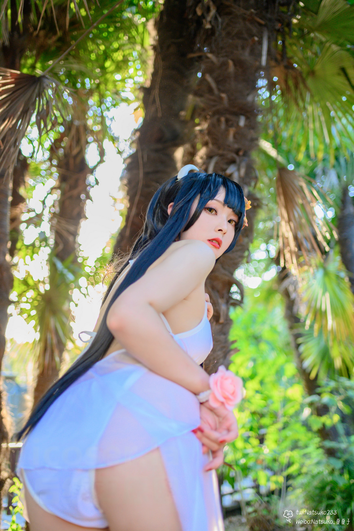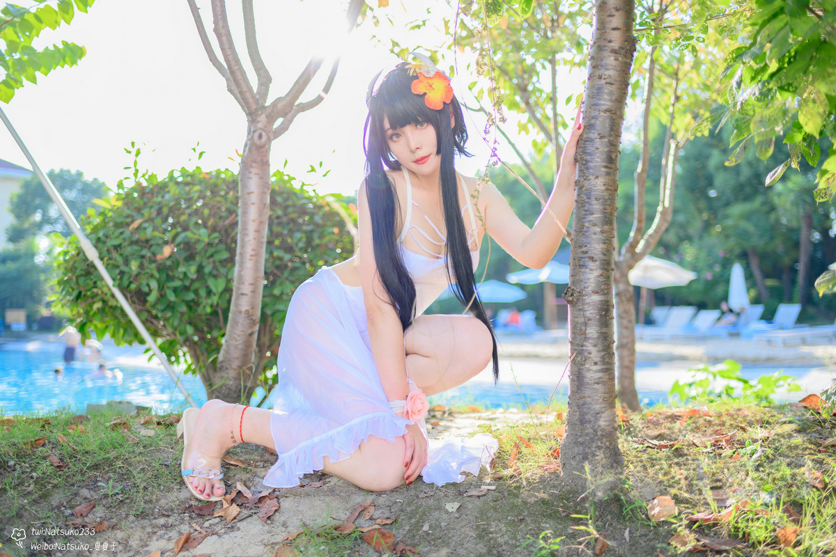 網絡美女Natsuko夏夏子比叡泳裝主題泳池邊性感白色連體泳衣秀翹臀美腿撩人誘惑寫真55P