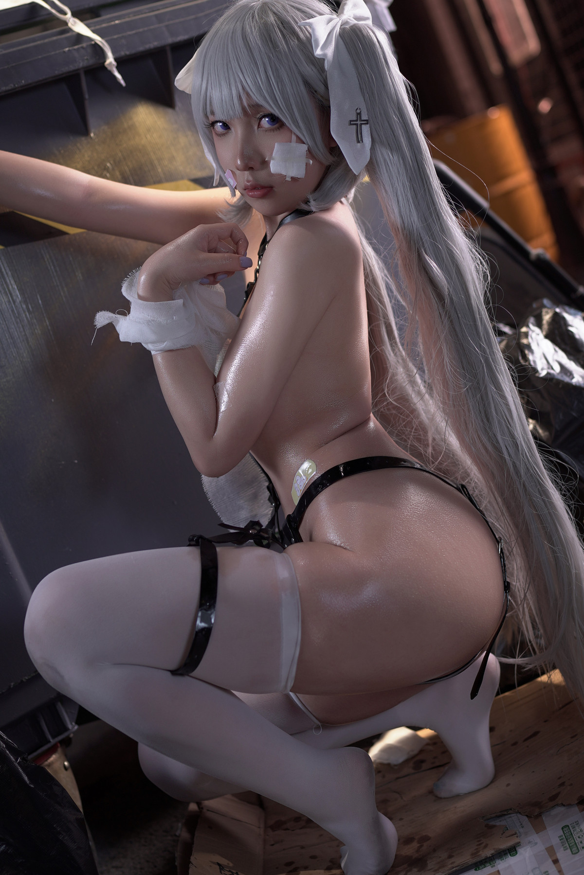Coser美女小和甜酒rurudo初音醬主題性感黑色情趣服飾配白絲襪秀油亮肌膚誘惑寫真141P