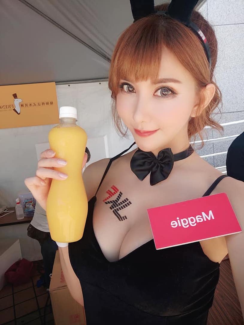 正妹「百變maggie」是身高170公分的長腿辣模,拍攝過許多火辣的外拍作品,在展場中的高挑身材也十分吸引人,外型看起來很美艷,實際上是很好相處的女孩呢!她每次的打扮都很誘惑,像是黑色爆乳內衣外搭白色襯衫,再加上黑絲襪,OL風超惹火!